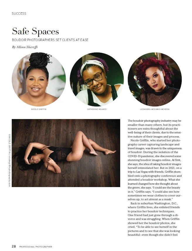 But here’s the part that makes this feature extra special: it’s rare to see three Black boudoir photographers featured together in the pages of a national magazine. Representation matters. Our presence in this article wasn’t just about photography, it was about showing women of color that they are seen, valued, and celebrated in this industry.